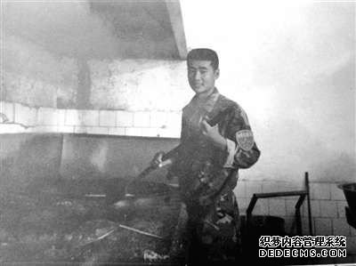 • 图为2002年王洋在炊事班炒菜时的留影。照片由王洋本人提供