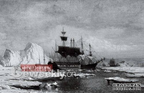 • 1890 年,威廉布拉德福德(William Bradford),布面油画,《开凿航道的北极探险队》     在过去三年中,欧盟、日本和韩国已申请北极理事会的永久观察员身份。事实上,就在北极进行科考而言,韩国才是支出最大的国家之一。但中国涉足该地区的意义是最显著的。