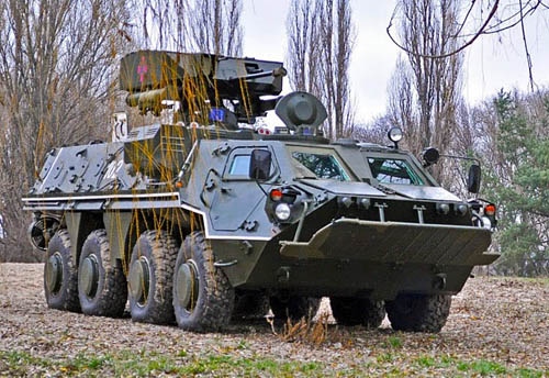 事实上,在伊拉克这样“多事之地”,BTR-4绝不能仅仅担负运兵平乱的作用,许多时候还得充当“攻坚主力”,这就必须具备快速转换角色的能力。乌克兰人早就为BTR-4准备好“变脸”的“道具”,仅伊军就装备了2种步兵战车(“雷声”和“暴风”)、BTR-4BAU自行高炮车、BRM-4K侦察车、BTR-4K指挥车、MOP-4K火力支援车、BREM-4K抢修车、BSEM-4K救护车等型号。