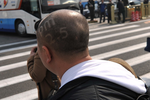 记者头剃“PM2.5”采访两会 4年4换发型(1)(2)