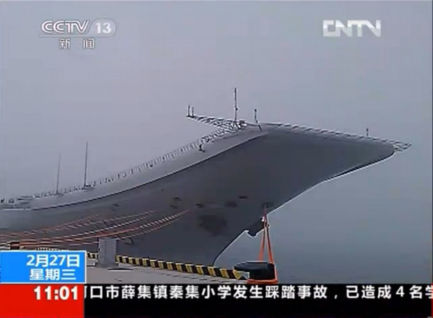 央视新闻节目中对辽宁舰靠泊青岛母港的报道