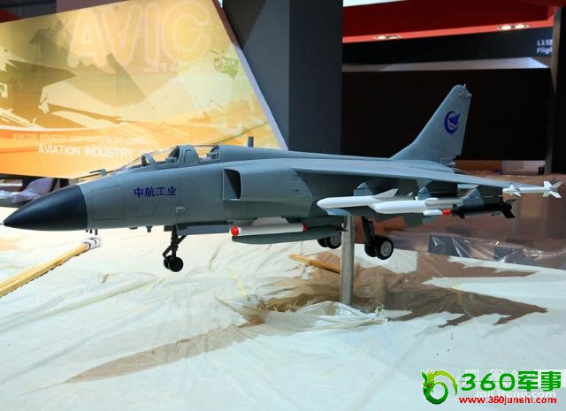 本届珠海航展将在11月13日开幕,展馆内已开始布展。图为中航工业集团展出的“飞豹”战斗轰炸机模型