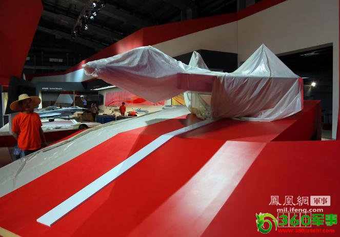 中航工业集团是航展的主办单位之一,在其展厅的最显眼位置,已经安置了一款被塑料膜包裹的战机模型。因为展台还在刷漆,所以不能揭开塑料膜。但仅从能看到的主起落架舱门和总体布局特点,便可得知,这就是刚刚首飞的沈飞四代隐身战机(有人将其称为“歼-31”)模型。显然研制这款飞机有对外军售的考虑。